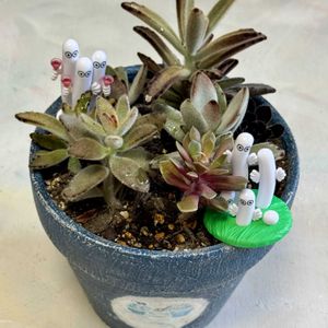 🏷️ウサぴょん祭り 参加させていただきます✨ 野兎さん💕 成長がゆっくりで小さいウサ耳ですがら小さなモフモフの葉が可愛い子です😃 pic2〜5は昨日の実家多肉さん✨ 2はトップシータービー母さん 再び花芽をバンザイ🙌 ずっと遮光なしの為か?紅葉の色のまま綺麗😍 3は寄せ植えの子株さん こちらも同様です♪ 4,5はやはり屋根なし遮光なしのDAISO産シノクラッスラさん💕 お迎えして2年ほどは弱々しく全く違う見た目でしたが、気づいたら生まれ変わっていました💖 花芽も伸びて来ています✨