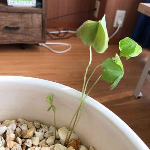 「何ということでしょう」 ㊗︎4人家族になりました。 もう直ぐ春です。 この子にも花が咲くといいな、 ピンクか、白か、紫か、黄色か…🌸🌼 まだカタバミの仲間のなかの、個体種なにかまではわかりませんが、花が咲いたら断定できるかな❤️と淡い期待を寄せています。