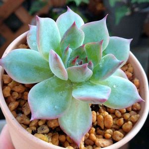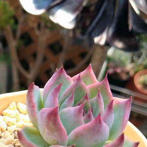 Echeveria chihuahuaensis🍀 久々、チワワエンシス、いい色だな〜ぁ💚 後ろの、黒いものは、大きめ黒法師です😅。