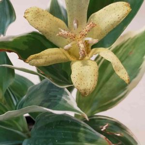 斑入りタカクマホトトギス ユリ科ホトトギス属 耐寒性:強 花だけ見たら蘭?!葉っぱだけ見たら姫ギボウシ?!みたいな感じのホトトギスちゃん☺️ ナニコレめずらし〜みたことなーい🧐と、衝動買いしちゃいました。冬越せるかなあ。。。