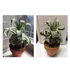 チランジア・ストレプトフィラ。 上が2週間程前、下が今日。 だんだん葉先がクルッとしてきた。 あの独特の形になるといいな