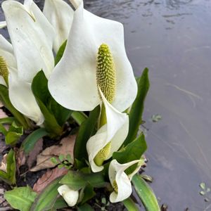 散歩道のお花🐕🚶♂️ 🤍ミズバショウ🤍水芭蕉🤍 サトイモ科ミズバショウ属多年草 数年ぶりにミズバショウに出会う💓 白い花のように見える純白の衣🤍 仏炎苞と呼ばれる葉の変形したもの 円柱状の部分に小さな花が集まった花序がある🤍💛 数十から数百の小花あり🤍💛 雄蕊、雌蕊を持つ両性花 自家受精する💓 2️⃣枚目がお花のズーム 4️⃣熊之助も「お〜い!まだ⁈」と お利口さんに待機中🐕🤣 5️⃣巨木なコブシ🤍 以前から気になっていた沢山の白花 なんだろう❓と近くに行ってみる 高さ15mはあるであろうコブシだった💓💓💓 最近、曇り空が多くて 写しても白花は写り悪いpicで💦 青空になって〜😆 実は、このコブシの咲く崖の下に ミズバショウがあったのです❣️ 発見💡🙌💡 群生ではないですが嬉しいなぁ🥰 大切にしたいミズバショウ💖 こちら地方ではミズバショウを 「ベコノシタ」と言う🤣 牛の舌に似ているから😆