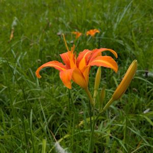 ワスレグサ ユリ科ヤブカンゾウ属 ワスレグサ(萱草)の正式な和名は、真夏に咲くヤブカンゾウ。 有史以前、中国大陸から渡来した帰化植物といわれる。 (Hemerocallia)の多年草で、ニッコウキスゲやユウスゲも同じ仲間。 属の学名は、ギリシャ語で華麗に咲く一日花を意味し、この属の植物の花はすべて一日限りの命である。 ⚪︎緑一色の中に映えました。
