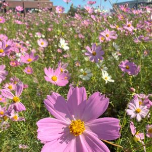 こんばんは🌆 散歩途中にコスモスの花が咲いていました🌸 花言葉は「調和「謙虚」 9月上旬頃から咲き始め、季節が 段々秋に進んでいます とても綺麗に咲いていました😊