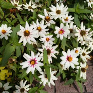 おはようございます😊 いつもありがとうございます♡ 買い物先 駅前の花壇で 白いジニアが満開でした🤍💛🤍 2025.10.24 📷️