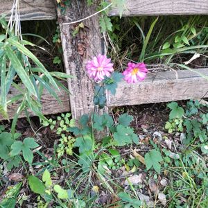 こんにちは〜😊 いつもの散歩道🚶♀️🚶♀️🚶♀️ 公園の柵 八重咲きの秋明菊🩷 こちらは紫陽花の花がいい色合いに 2025.10.27 📷️