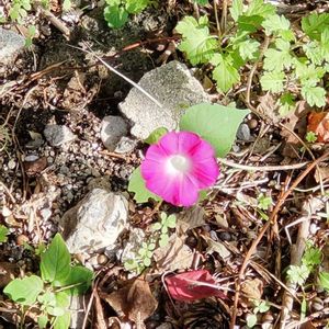 こんにちは〜😊 いつもの散歩道🚶♀️🚶♀️🚶♀️ アサガオですね~ 小さなお花が1輪咲いていました🩷 2025.10.27 📷️