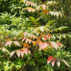 こんにちは〜😊 いつもの散歩道🚶♀️🚶♀️🚶♀️ ハゼノキの葉がだんだんと紅葉し始めています🍁 2025.10.1 📷️