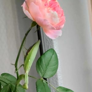こんにちは〜😊 ベランダで薔薇 クロードモネが綺麗に咲いています……と 「何見てんだ お前?」と言いたげなカマキリが😳 セブンさんのと同じハラビロカマキリでしょうか😆