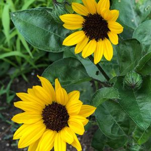 おはようございます😃 駅までの自転車🚲… 花壇に低めの向日葵🌻🌻さんが 咲いてます♡ とても可愛いです💕 元気頂き… 今日も頑張りましょう💪😃💛🤎💚