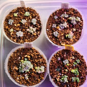 1-5℃☁ 外のLED育成たち 成長遅いけど可愛い💕 交配してもただの黒爪やけど実生は可愛い🤗 夜中2時ぐらいまで 風が強すぎて眠れんかった