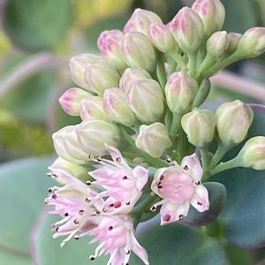 ᰔᩚ ᥫᩣ ①ヤマトニシキ 可愛い蕾〰️徐々に開花 ②ミセバヤ 葉がとても綺麗です ③日高ミセバヤ 2週間前にお迎え 早くも蕾発見(☆∀☆) ④桜吹雪 花後の株を迎えてからやっと花芽🙌 ⑤マッコス 緑色の花が爽やか🍀*゜ ヤマトとマッコスは百均産 多肉さんたち集めて見ました🪴