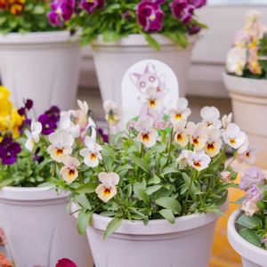 先程upした寄せ植えに入り切れなかったビオラたち 1、2枚目 エボルべ 川越ROKAさん監修。大牟田さん作のビオラです 優しいニュアンスカラーが素敵💓 3枚目 さくらドロップス 見元園芸新品種で花色同様、タグのピンクのネコちゃんが気に入りました☺️💕 🏷️撮っておけば良かった🤣