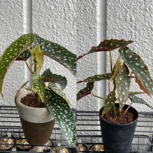 木立ベゴニアのマクラータとホワイトアイスです😊 マクラータは最近購入し、ホワイトアイスは一年ほど前に手に入れました👍 水玉模様で可愛らしいです🥰 ホワイトアイスは成長が早くすごく上まで伸びてしまったので切って挿し木の状態です😊 元の苗も元気なので増やすことが出来そうです🙆♀️