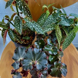 2025.6.26 個性爆発ベゴニアトリオ 去年消滅しかけたマクラータも何とかここまで復活 ホワイトアイスがいちばん生命力強くてカットしてあちこちに水差し増殖中 ダークマンボがいい感じに黒くてフリフリに仕上がりました そろそろ少し涼しい部屋に移さないとまた消滅しそう