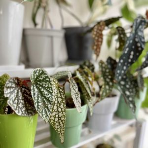 ✤ベゴニアホワイトアイス ✤ベゴニアマクラータ ✤ステファニアカウィーサキー 植え替え時期タイムリミット近し! という事で、 右2つ、夏から発根させてたベゴニア達を 水→ハイドロボール→土に。 昨日DAISOで見つけたファィヤーキングカラー的な鉢に🪴 こんな鉢も出してるんですね〜 周り地味めな鉢ばかりだから アクセントカラーにイイかも。 前から居た少し大きめのマクラータも緑に植え替えしてみた😆 姿がまだ整ってないですね〜 後で移動させましたが可愛さを見たくて ギュウギュウに並べてます。 ステファニアカウィーサキーの1枚葉も かなり大きくなりました🥰 さて、冬ってどうなるんだろ(不安)