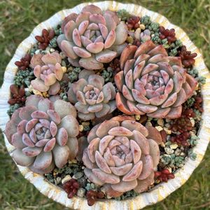メインの多肉をオリビアからアメイジンググレイスにしました。 オリビアから子株が何個かでてきてたのでおひとり様に。 真ん中にピンクがくると可愛いな💕
