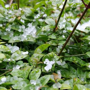 マサキに霰🇳🇱 抹茶みたいなマサキ'Pierrolino'に霰がまぶされてます✨ただしこちらはお菓子の霰ではなく氷の霰🍵それでも何となくおいしそうな😋