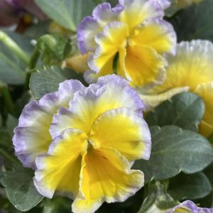 ビオラ エッグタルト🌼 フリンジに薄紫の差し色 白×黄の花の中にこの花色の花茎が数本あります 個体差なのか、咲き進みながら色を変えるのか…初めてお迎えの事ゆえ、不思議がいっぱいの魅力に溢れています🌼 天使のおやつに紫の小花を添えた、これはお花の神様のいたずらかなぁ^_^ ひとつ食べて今週最後の仕事に向かうとしましょう♡
