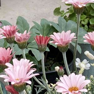 まだ花と緑の少ない庭にピンク色…小さな寄せ植えでも、見れば心が和みます♡ ローダンセマム アプリコットジャム 植え付けから二週間🥀 冬に逆戻りの数日も耐えて、やっとノビノビ〜の春本番!となりそうな…♡ 足元のシレネ・ユニフローラとも相性は良さそうです