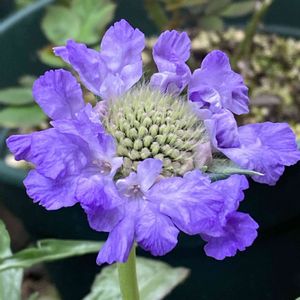 冬越し鉢の中で1番早く花を咲かせたスカビオサ まだ冬、1月の寒い頃から株元につぼみを見せていた所を見ると…かなりの耐寒性‼︎強いコです‼︎👀 コーカシカブルー 鮮やかなブルーが、葉っぱばかりのバラ鉢に色一点の華やぎを…♡ 紅一点、ならぬ青一点!です…😹