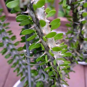 アローディアプロセラ 日本名で亜竜木 5年前にお迎えした処分品です😁 春になり、新芽が芽吹いてきました✨雨に打たれ、イキイキしています☺ お迎えしたときは、骨のようにゴツゴツした枝だけでした😆 こんなに元気に育ってくれて嬉しいです☺