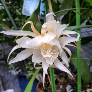 お迎えして二度冬を越して ついに 花が咲きました✨ 2日ほど前に、蕾を発見😆 今日、未明咲いたと思われます😵 朝早く見に行ったら もうこの状態😢 もうしぼみかけています😢 待ちわびていたのに、 あっけないこと… あー でも、嬉しい限りです☺️