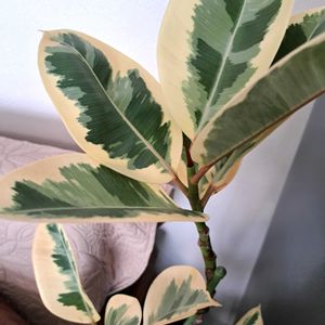 フィカスルビー。 こちらも、可愛かった赤色が消えてしまいました😱 今年の夏は暑かったので、日除けをしたせいか、葉焼けはなかったのですが、二色になってしまいました😵来年は何とか、赤色を取り戻したいです☺