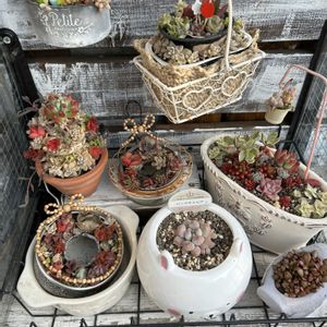 おはようございます 1️⃣ 冬に放置の多肉寄せ植え 多肉棚の上段でカリカリに~🪜☀️ そろそろ消え去った多肉ちゃんの補充です🌵 2️⃣ピンクキャビア 4️⃣アップルフラワー (本当はもっともっと美人さんです) 女優ライトが欲しいわ🔦 先日電球を買いにホームセンターに行き🚗💨 🌵お迎えしてしまいました 3️⃣ 下段でこんな感じに🪴