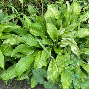 おはようございます😃今日の花ギボウシ、斑入りとライム色を二つ植えました、小さな株です🌸