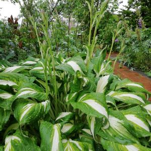 斑入りギボウシさんです😄茎が伸びてきております✨お花が楽しみです💕