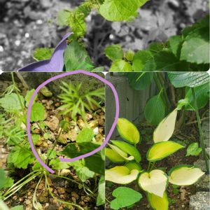6/8🏷️8日は葉っぱの発表会に参加します ⬆️朝顔さんの葉っぱ 少しだけ桔梗さんも ↙️丸をつけたところニゲラさん?かも ↘️斑入りギボウシさん