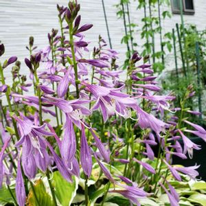 花付きの遅かった今年。今、ピークが来てます* ギボウシは花の蕾の形が橋の欄干にある擬宝珠に似ていることから名付けられました。 まっすぐ伸びた花茎に、白や紫のほっそりとしたろうと状の花を次々と咲かせます。 🏷️青い花マニア に参加します