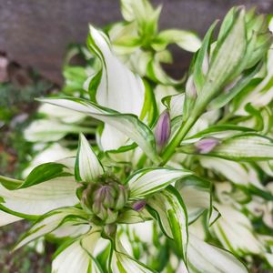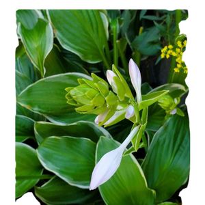 余り増えないらしい ご近所さん印の 小型の斑入りギボウシ✻*˸🍀ꕤ🍀*˸*⋆。 これはこれで可愛くて 花も咲いて来ました😄💕 冬を越して 来年春に増えているか期待しています🤗🍀