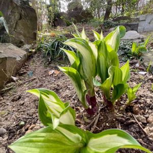 ギボウシ🌈 3年目、去年は花芽がついたものの折れてしまったので今年こそ、お花を咲かせたいです🌿 まだ芽が出てきてます♪ 🏷️8日は葉っぱの発表会 🏷️葉っぱの日に参加させて頂きます🌿