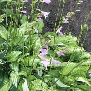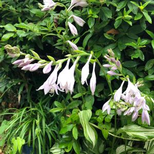 今年の🌿🌿𓂃𓈒 𓂂𓏸 🏷斑入り ギボウシ💖さん 😹大きくなり過ぎて 葉っぱ𓂃𓂂🍃💨💨 たくさん梅雨前に ✂️カットされ…(๑˃̵ᴗ˂̵) 急な🌡☀猛暑も🌀🌀 🙈襲いましたが𓂃 𓈒𓏸 お花…優しい色で 2ヶ所💝咲いて…(💜ᴗ͈ˬᴗ͈) •*¨*•.¸¸♬︎くれました𓂃✨𓏸𑁍