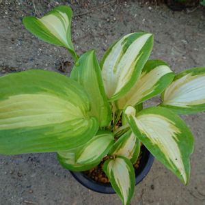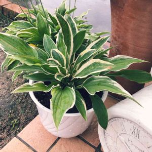 ギボウシ 葉っぱだけでも斑入りで綺麗なのよ🍀 ジャングル化してきたなー𖥧。⋆⸜ ⚘ ⸝⋆𖥧𖥣⋆⸜ ⚘ 🌿 少し整理しなくては(ˊo̶̶̷ᴗo̶̶̷`)