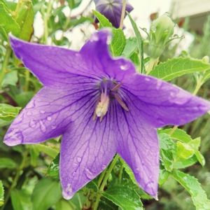 おはようございます 雨が上がり少し薄日が差した時間 庭の花を眺めました 切り戻しをしてまた花を咲かせている桔梗の中に花びらが6枚と3枚の桔梗があります 滴も綺麗だったので投稿しました 暑い日が続き 疲れがでていた庭の花木には恵みの雨になりました 雨の帯が北陸地方にかかるとの天気予報を見ました 心配です 早い復興を祈ります