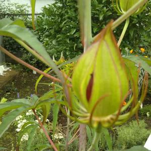 モミジバアオイの実だと思います😃 大きな真っ赤な花が咲きますね😍 実も大きいです。 花はありませんが、緑一色に茎や蕚の赤いアクセントがカワイイです😃💕