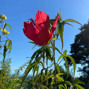 紅葉葉アオイ 涼しげに ぽつんと一つだけの花が夕空を見上げていました 今日は旧暦の七夕 そして立秋