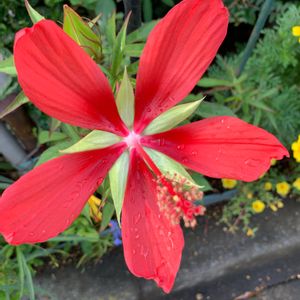 朝大きく開いていたのに 夕方見に行ったらすぼんでました。気がつけば花の落ちたガクがたくさん 花が長いと思ってたのは、次々に咲いていたのですね。 しっかり見てないで、ごめんなさい🙏