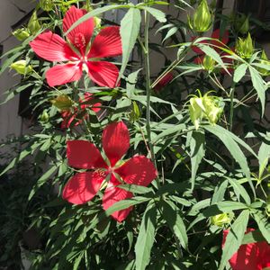 ようやく本気出したみたい🥰 10年位前、大病後定期検診に行く途中初めて見て暑さにも負けず綺麗に咲く花🌸にとても勇気をもらえました。次の夏からうちでも咲いてもらってます🌿