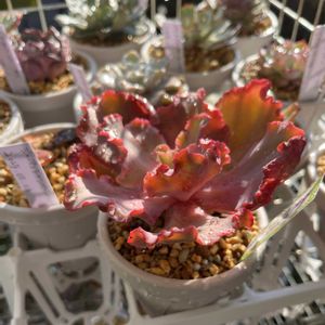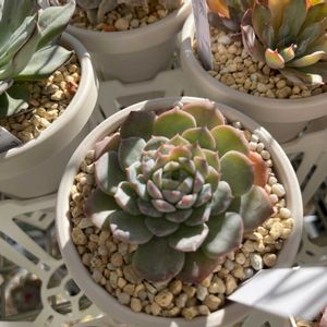 2025/11/26、エケベリア、紅葉中。 入手時は緑緑していたエケベリアラックが 徐々に赤や紫になってきています。 どの株も葉の数が増えて盛り盛りです。 全ての鉢に緩効性肥料を与えています。 肥料を与えてこの紅葉ぶりなので 与えていなかったら、もっと濃くなっていたのでしょうか。