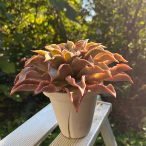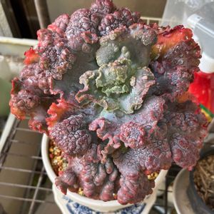 2025/11/26、can can × baron bold。 11月11日購入。 びっくりするぐらいの一目惚れ。 Webショップで購入したのですが、写真とはだいぶ違いました。 それでも迫力ある苗でお気に入りです。 23cm、深い色合い。 カンカンの波と色×バロンボールドのモコモココブと色 コブが葉の端に出ているのも格好いいです。 茎に太さもゴツくてかっこいいです。