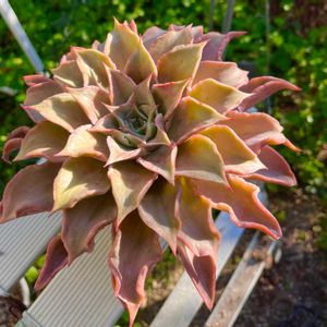 2025/11/26、大きくなるエケベリア。 夏に入手のエケベリア。 まだまだ水やりしています。 秋を越して、鉢からはみ出るほど大きくなっています。