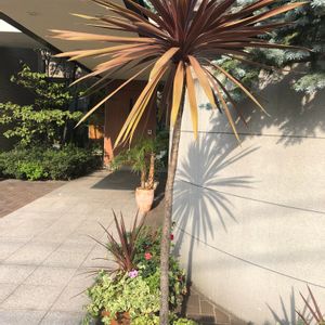 赤ドラセナ 植えた時は同じ高さだったのに 2年半くらいで 左の方が大きくなりました。