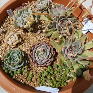 七福神•*¨*•.¸¸☆*・゚ 毎年夏にバラバラになる… 今年は通気性の良い盆栽の鉢に植えてみました😊 今はお子様いっぱい💚 今年こそ夏越しできますように🙏