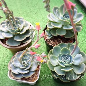 先日ピンクザラゴーサさんをお迎えしました♡ エケベリア丼がカラフルで賑やかになってきました☺︎ 元々二株あったインブリケイタをお嫁に出し(メルカリ)、空いたスペースにピンザラさんを植えました。多肉のお譲りは初めてでしたが、出品後すぐに決まり日本中にタニラーさんがいるんだなと改めて感じました🌵 それにしてもクリスタルの花芽が凄いです…笑