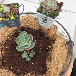 春にかけて葉っぱが へにょへにょペラペラになってかなり小さく...。通気性かなぁとカゴ植えにしてみたら葉数も増えてお子様も大きくなってきたー☺︎。がんばってー。