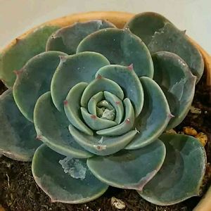 前述の、ナゾの新入りサンと一緒に 車内で吹っ飛んだお友だち。 こちらもスポッと抜けちゃったので 土を落とさないように素焼き鉢に移しました。 スプーン状の葉っぱがカワイイ🌼 七福神と同じ?説があるらしいですね😊
